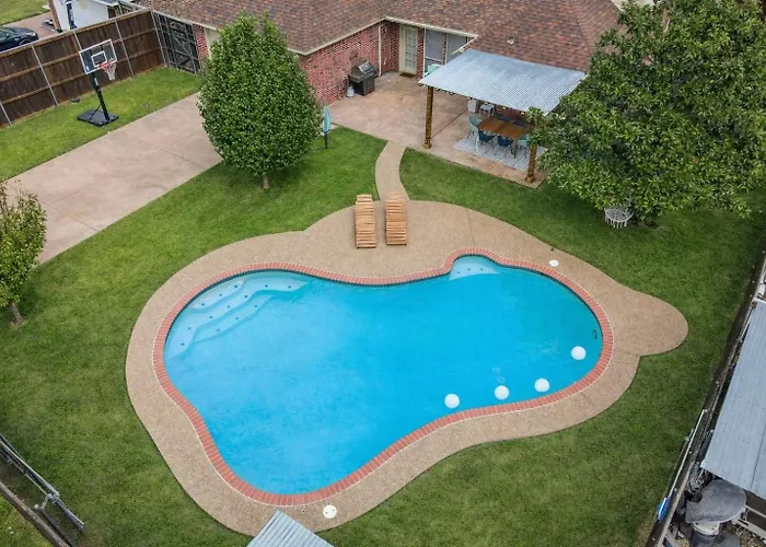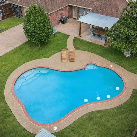 Welcome to the exquisite 6Br 3.5Ba Home Pool, Hot Tub, Game Room -16 Guests, a premier accommodation option designed for both relaxation and entertainment. Nestled in a serene setting, this remarkable retreat is just 45 kilometers from Dallas Love Field, ensuring that you're never too far from the vibrant pulse of the city while enjoying a tranquil escape. The home offers a perfect blend of luxury and comfort, catering to families and groups seeking a memorable getaway.